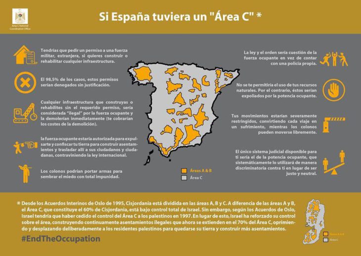 Este mes marca 50 años de la ocupación de los territorios palestinos por parte del Estado de Israel. Pero, ¿qué es la ocupación, y cómo afecta ésta a los palestinos y palestinas? Para responder a estas preguntas y darle un vistazo a las vidas de los palestinos que viven sobre ocupación, la Oficina de Coordinación Nacional del Área C (Area C National Coordination Office) publicará 50 hechos sobre el Área C de Cisjordania, Jerusalén y la Franja de Gaza a lo largo de la semana y publicará una serie de infografías durante el mes de junio.
