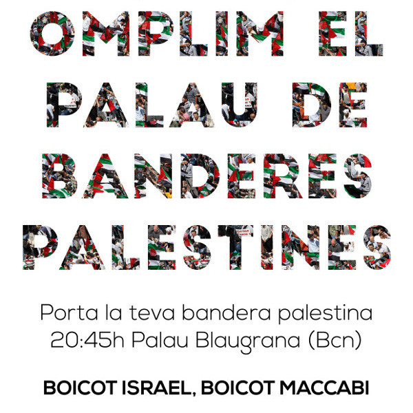Hoy, jueves 12 de marzo, el Maccabi de Tel Aviv visita el Palau Blaugrana para jugar un partido del TOP 16 de la Euroliga de baloncesto. En los últimos años, ha sido habitual ver y oír consignas a favor de la libertad del pueblo palestino, cada vez que el equipo israelí visitaba el Palau Blaugrana. La solidaridad de los grupos de animación y de las peñas barcelonistas con la causa palestina les ha llevado, incluso, a presentar una demanda ante la Euroleague (empresa organizadora de la competición con sede en Barcelona) donde se pedía la exclusión del Maccabi Tel Aviv de la competición europea.