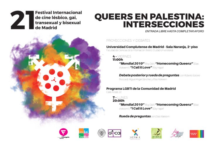a3_lesgaicinemad_2016_cinepalestino-001-1Del hermanamiento con Kooz*, el primer Queer Film Festival palestino, nace esta sesión, dedicada a explorar las producciones LGTBIQ+ palestinas y las de sus referentes. Un espacio donde ir deconstruyendo los estereotipos islamófobos de género y la propaganda homonacionalista sionista, que instrumentaliza los derechos LGBTIQ+ para el lavado de imagen (pinkwashing) de su ocupación militar y apartheid. En esta sesión especial se proyectarán los siguientes cortometrajes: “Mondial 2010” (Roy Dib), “I Call it Love” (Elsy Hajjar) y “Homecoming Queenz” (Elías Wakeem).
