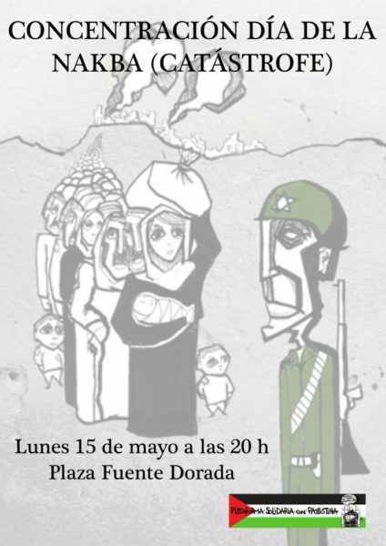 La Coordinadora Andalucía con Palestina, que suma a más de una decena de colectivos y organizaciones sociales andaluzas, organiza varios eventos en la semana del 15 de mayo en conmemoración de la Nakba. Una fecha negra en el calendario que recuerda la catástrofe que sufrió la población nativa palestina cuando fue expulsada de su tierra en 1948 por los grupos terroristas del naciente estado de Israel. Cerca de 800.000 personas perdieron sus hogares en lo que hoy se ha convertido en la mayor comunidad de refugiados del mundo con más de 5 millones de personas que todavía hoy esperan poder regresar a su hogar.