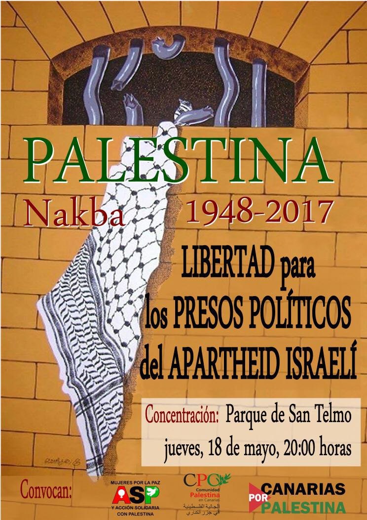 En este contexto nos encontramos este 15 de mayo ante la huelga de hambre indefinida de más de 1.600 presos políticos palestinos desde el pasado 17 de abril, siendo la mayor protesta registrada en la Palestina ocupada en la historia, para reclamar sus derechos: los de quienes permanecen encarcelados sólo por ser árabes y no querer abandonar Palestina, la tierra de sus antepasados. La situación de precariedad que sufren los presos políticos palestinos en las cárceles israelíes es denunciada por Amnistía Internacional (AI) y organizaciones de derechos humanos israelíes como Breaking The Silence (BTS).