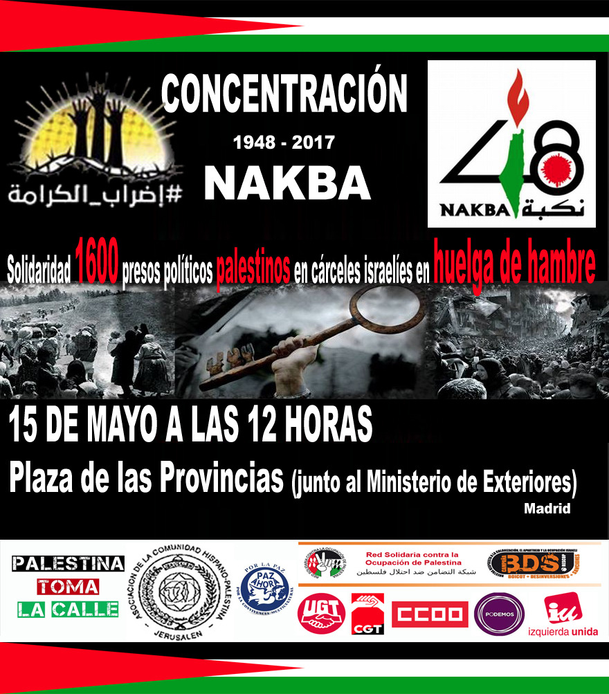 La Plataforma Solidaria con Palestina de Valladolid apoya al pueblo palestino en el DÍA DE LA NAKBA o Catástrofe y se solidarza con los mas de 1600 presxs en huelga de hambre desde el 17 de abril demandando dignidad
