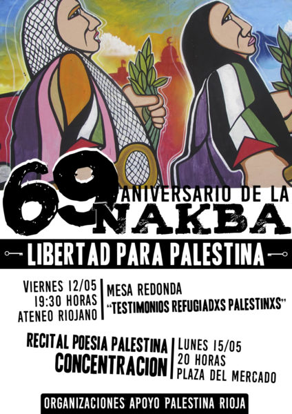 Se cumplen 69 años del autoproclamado Estado judío que provocó el exilio forzoso de más de dos tercios de su población, robó la tierra histórica de Palestina emprendió una campaña de limpieza étnica que dura hasta nuestros dias y abocó al «sociocidio» (destrucción política y social) del pueblo palestino.