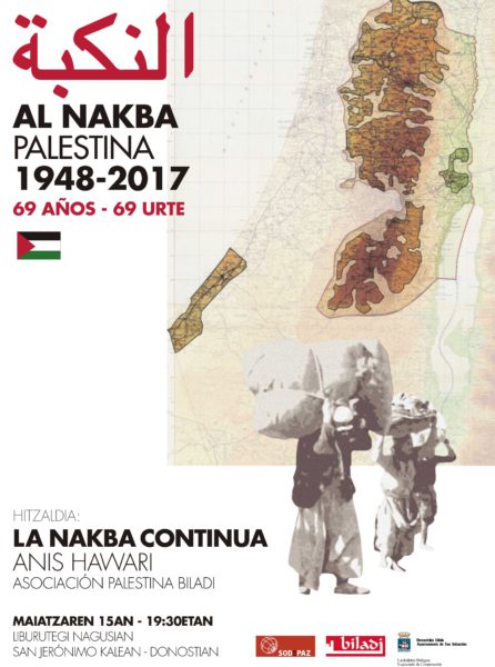 o Conferencia “70 años de la Nakba y la lucha por los derechos palestinos: La Campaña BDS-ELAI” con Hector Grand, profesor de la Universidad Autónoma de Madrid y miembro de IJAN (Red de Judíos Antisionistas)