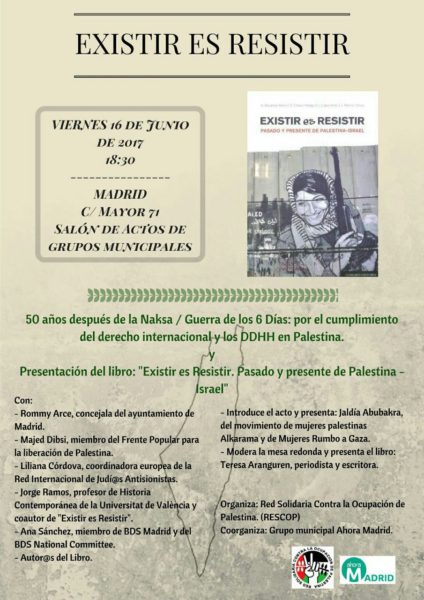 La RESCOP es la Red de Organizaciones en Solidaridad Contra la Ocupación de Palestina. Está formada por más de 50 organizaciones de todo el Estado español. Visítanos en nuestra página web y síguenos en nuestro FB Red Solidaria Contra la Ocupación de Palestina (RESCOP) y Twitter @RESCOP1