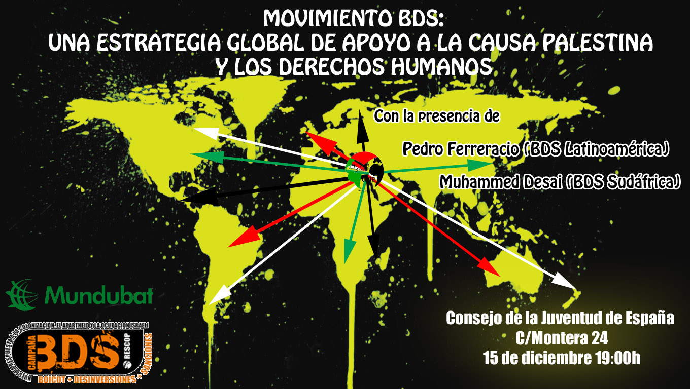La campaña de boicot, desinversión y sanciones (BDS) busca presionar a Israel por medios pacíficos para que cumpla las numerosas resoluciones de Naciones Unidas, el derecho internacional humanitario y los derechos humanos del pueblo palestino. La campaña busca exponer a Israel como lo que realmente es: no un país democrático sino un estado que mantiene la ocupación colonial y militar más prolongada de la época moderna, sometiendo al pueblo palestino a un régimen de apartheid.