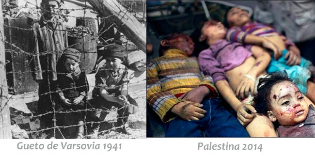 Gueto de Varsovia en 1941 y víctimas palestinas tras la masacre israelí del verano de 2014.