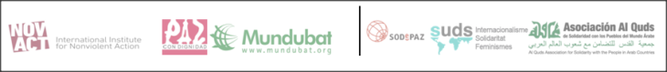 Al gobierno de España para que imponga de inmediato un embargo en la venta de armas a Israel, paralizando la participación en el programa Europeo Lawtrain y revisando los acuerdos comerciales con las colonias. Además, a revisar sus acuerdos gubernamentales con Israel o sus instituciones públicas, paralizando cualquier colaboración con ellas hasta que Israel no cumpla con sus obligaciones internacionales en materia de protección de la población civil a la que ocupa.