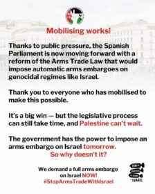 That’s why we demand the government immediately impose a full arms embargo on Israel through a Royal Decree.